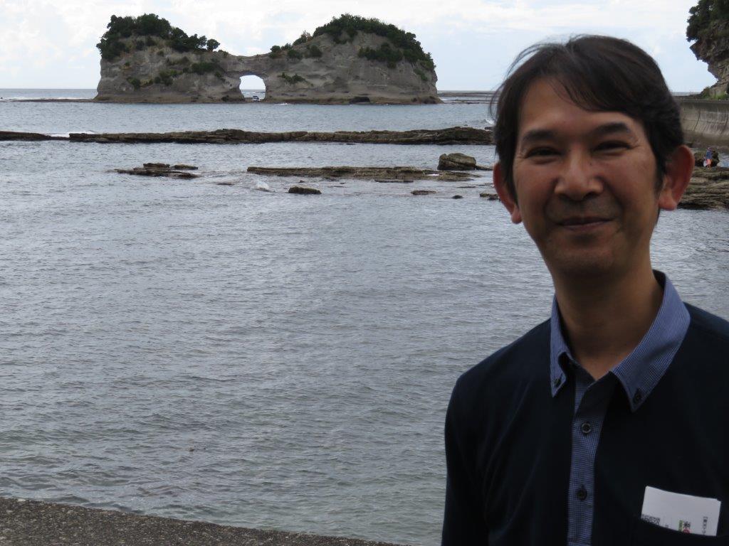 次に円月島をバックに記念撮影。