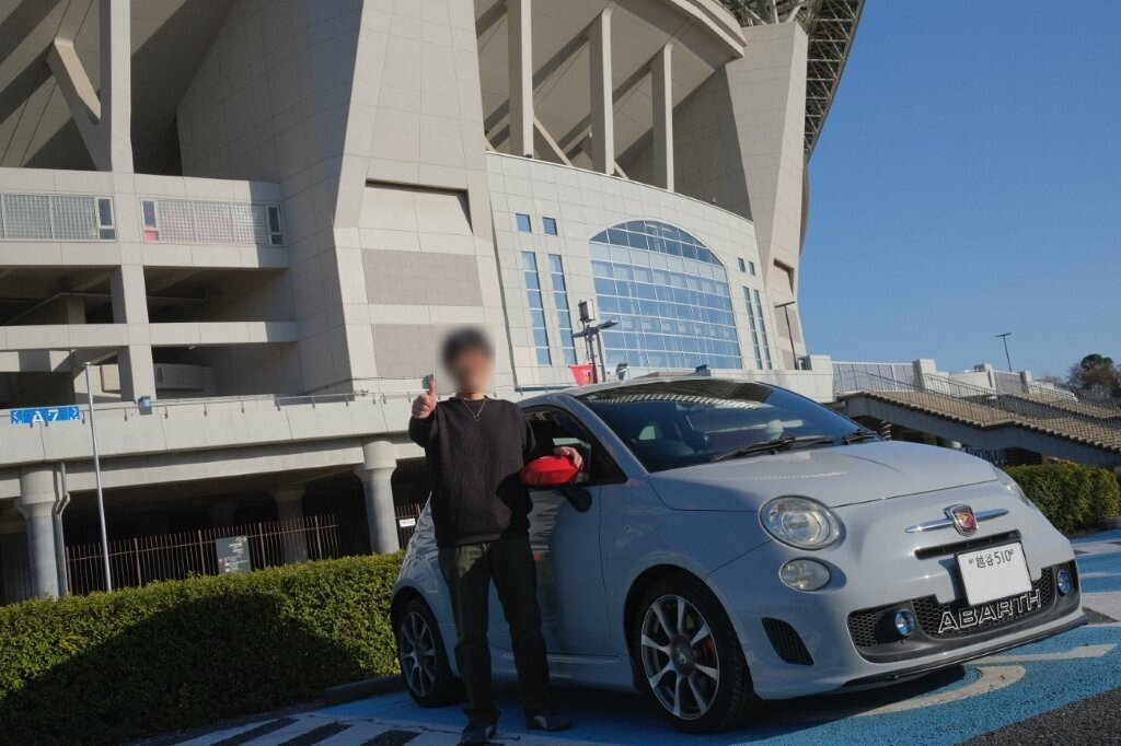 板金塗装など大工事になりましたがエンジン絶好調でボディはピッカピカに蘇りプレミアム納車しました。K様は凄く喜ばれ年賀状まで送って下さいました。2026年3月14日にご挨拶に行きましたがアバルト500で埼玉スタジアムなどに連れて行って頂き、夜は南越谷駅近くのカジュアルなイタリアメインの飲食店でビールを飲み美味しい物を沢山食べ話しました。帰りは宿泊先のホテルサンオーク南越谷まで送って頂き名残惜しくお別れをしました。本当に楽しかったです。